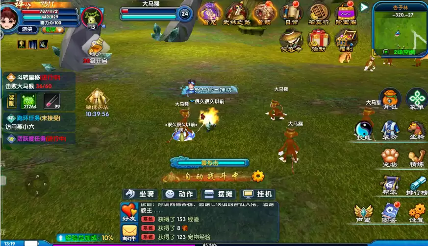 等级提升方面,氪金与非氪玩家各有路径。有元宝玩家开局入手 50% 或 100% 经验符,效率立竿见影;无元宝玩家可用绑定元宝购 20% 加成符,后续任务会大量赠送。需注意经验符不可叠加,而激活侠客令三档可获 20% 稳定经验加成,组队同屏每多一位队友加 10% 经验,挂机升级务必组队。跑环任务经验随等级递增,每日任务需刷满且优先组队 —— 共享刷怪进度能大幅节省时间;帮派打坐是稳定经验来源,准时参加即可享受福利。