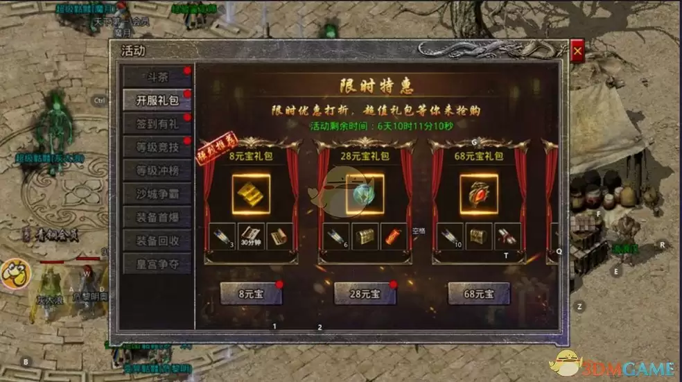 - 8元宝礼包:礼包内包含的金币在游戏前期用途广泛,无论是购买药水还是强化初期装备都很有帮助。完成基础的装备强化,通常能为角色增加50-60点攻击力,性价比颇高。