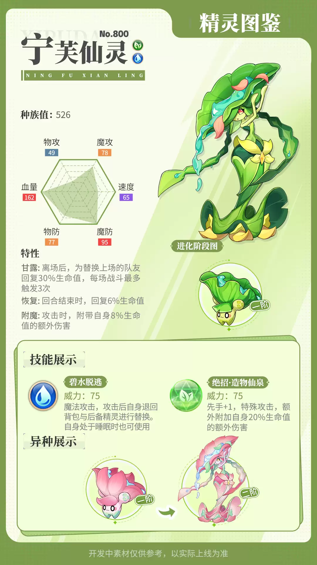 注:展示数据取自精灵最高阶形态,数据源于测试服,具体数据以游戏实际线上版本为准。