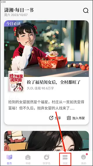 启动应用并进入书架:首先,打开手机上的潇湘书院APP。在应用首页的下方或侧边菜单栏中,找到并点击【书架】图标,进入你的个人藏书库。