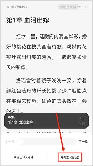 开启自动阅读功能:在展开的进度设置菜单里,你会看到【开启自动阅读】或【自动翻页】的选项。点击它,即可激活自动阅读模式。