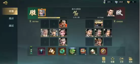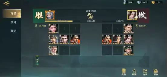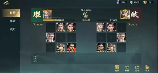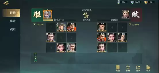 战报分析:此阵为虎韬阵,主暴击,针对敌方策攻阵型有奇效,先手击杀敌方中间部队,随后郭嘉和赵云按照横排竖排的输出顺序依次歼敌。