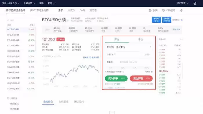2. 在交易页面输入自己理想的价格和数量,点击买入开多或开空。