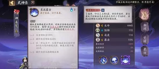 神启荒是一位以斗技见长的输出型式神,其技能体系围绕“星爆”与“星辰之力”展开,在造成伤害的同时拥有独特的减伤与增益机制。他适合在斗技场景中发挥,尤其在与携带伤魂鸟、地藏像等御魂的式神配合时,能展现出强大的战斗力。当然,也有玩家开发出他在其他场景中的单挂玩法。