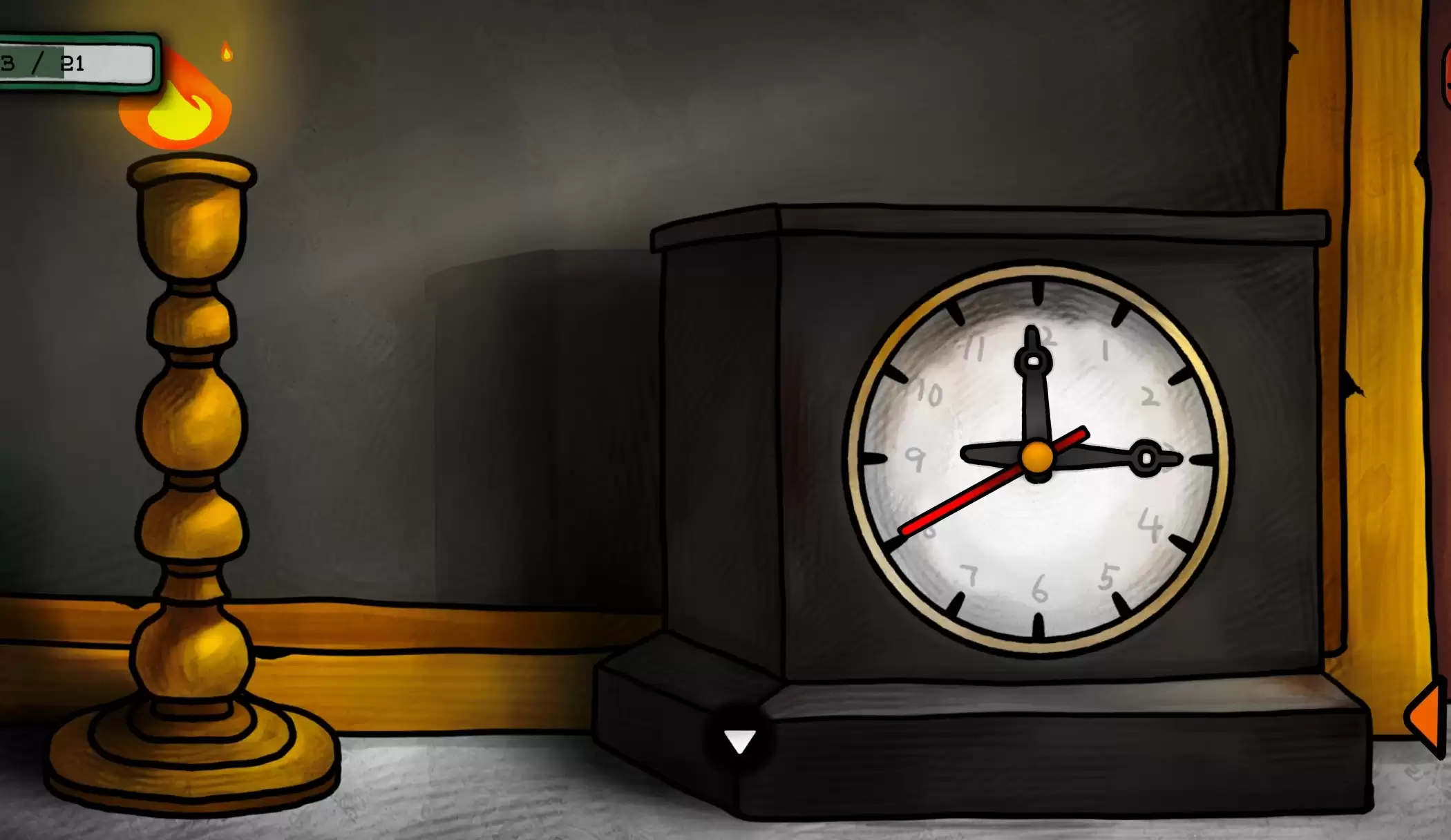 接着再点击闹钟,将闹钟的指针拖到刚才记住的时间位置,左边的烛台点燃。