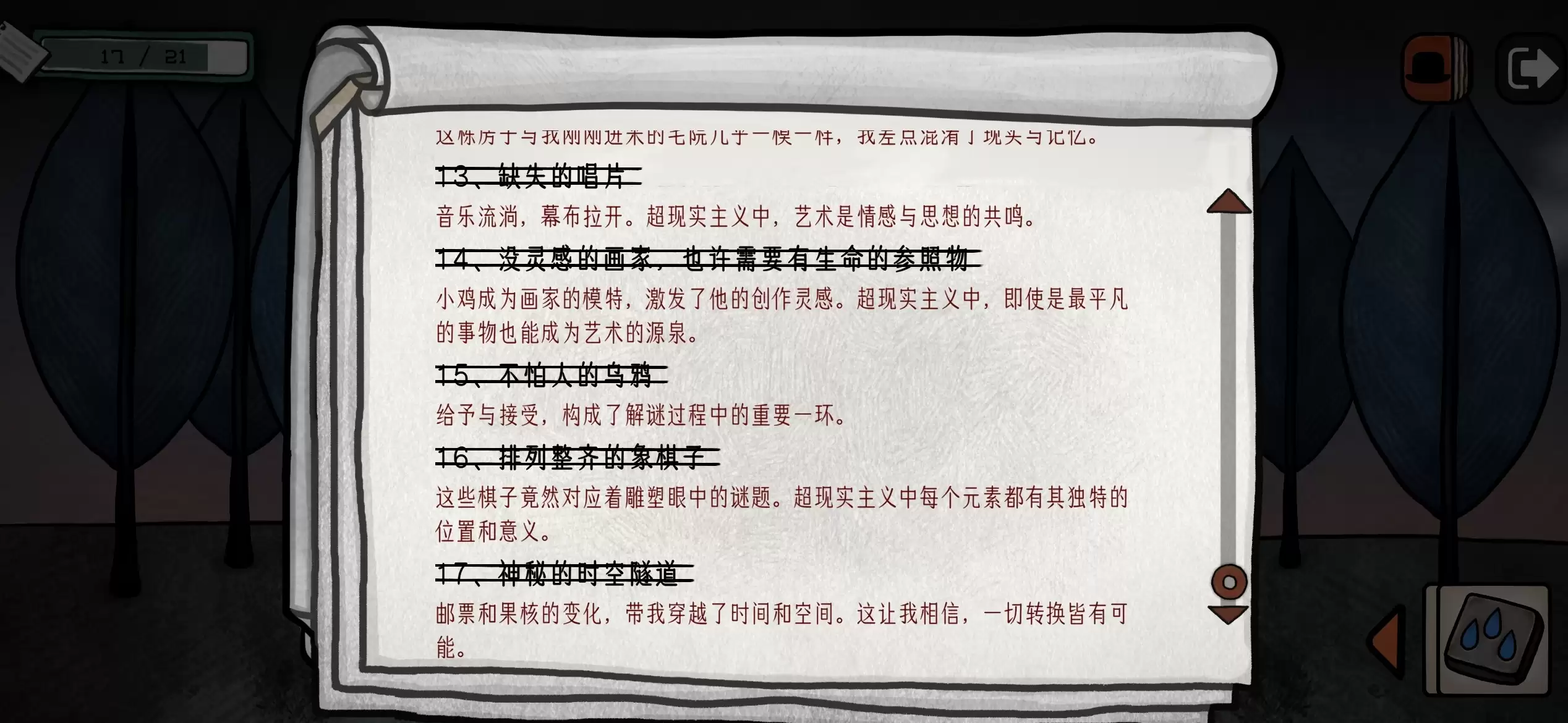 总结:游戏里总共是21个疑问点,我触发并完成了17个。
