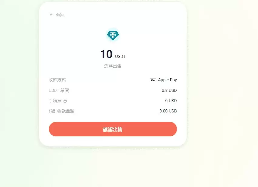 如果选择出金美元,收款的方式选择会多一点,小额也可以找到提领的方案,我尝试透过Apple Pay 提领10USDT,只会收到8USD。