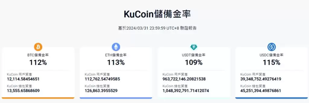 再来看看KuCoin 的资产储备情况。从官网提供的数据来看,KuCoin的储备金率都有超过1:1,做足了储备。