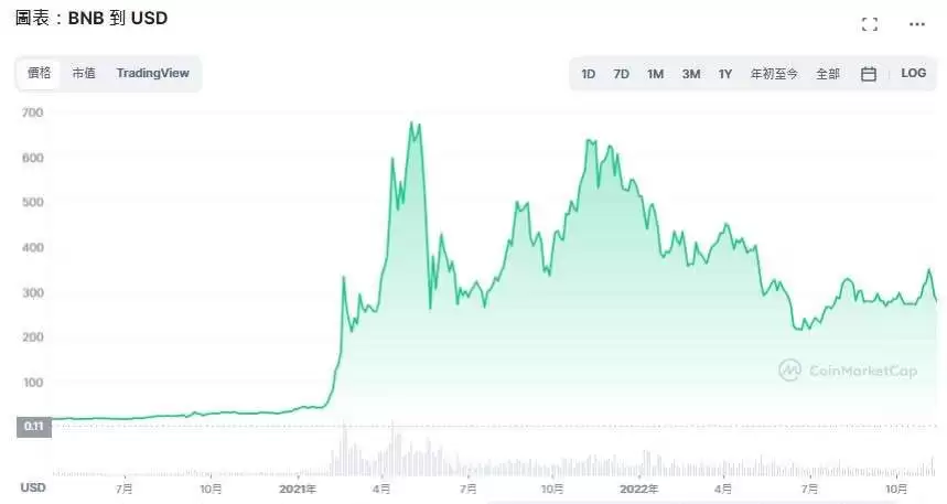 一般来说,BNB 的价格历史波动方式与市场上其他加密资产交易类似。接下来,让我们来看看 BNB 过去的价格。