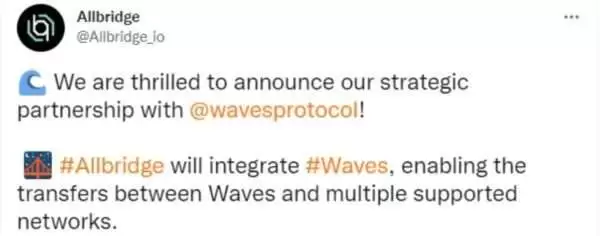 Wave 开发更新、Wave 2.0 以及与 Allbridge(一种促进不同区块链网络之间资产转移的协议)合作的消息等利好消息也推高了价格。