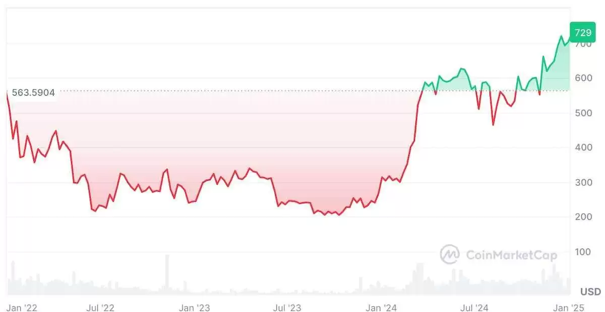 在上述积极因素的推动下,2024 年 12 月 5 日,BNB 的价格三年多来首次超过了 2021 年的高点,创下 793 美元的历史新高。