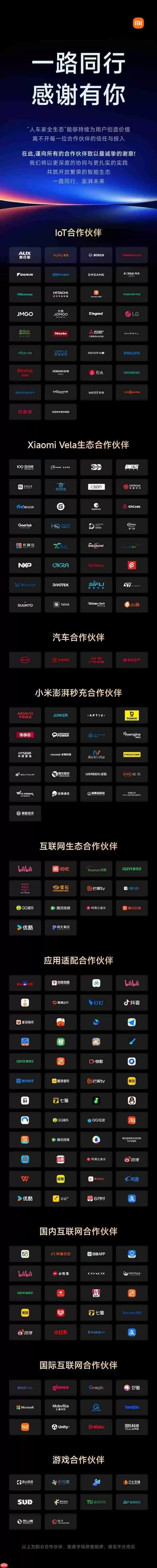 从这份名单可以看出,小米“人车家全生态”的合作版图已全面覆盖硬件制造、软件研发、内容供给与云服务等多个核心维度,成功构建起一个高度协同的开放性生态体系。