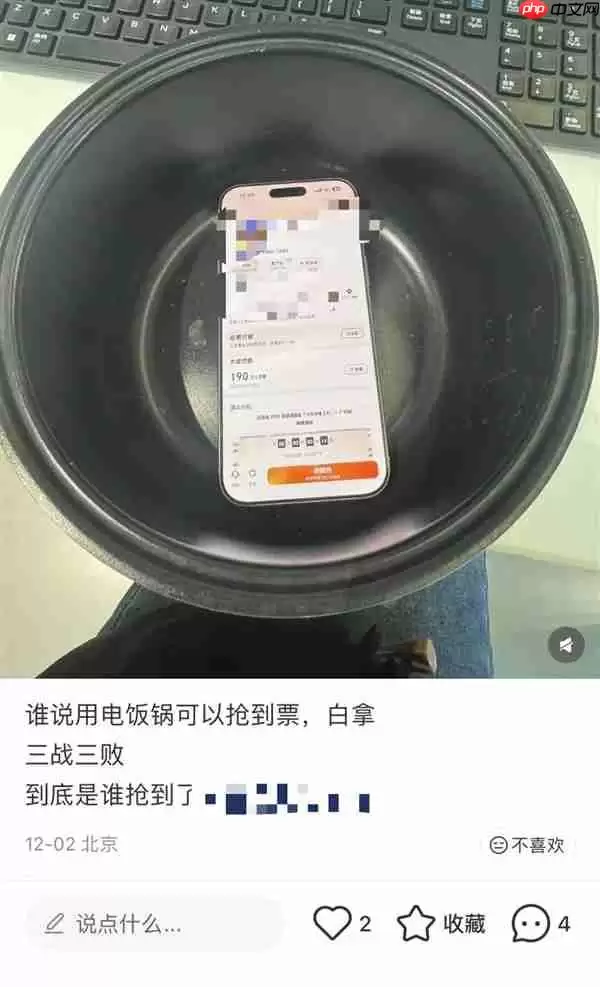 最近,网上悄然兴起一种“硬核”抢票方式,不少博主晒出自己的实战心得:把手机塞进电饭锅内胆,一边盖上盖子一边疯狂戳屏幕,声称抢票成功率瞬间飙升,仿佛给手机装上了物理级加速器。