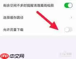 在“播放与网络”的设置项目中,仔细查找“允许使用移动数据下载”或表述相近的选项开关。这个选项一般位于下载相关的设置区域,文字描述清晰明确。