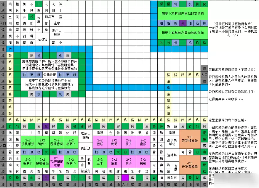 - 设施建设心态:对于暂时资金不足的高级设施(如生物研究所),不必急于建造。可以先在规划好的位置放置蓝图,待资金充裕后再行建设。切记,前期应将资金优先投入到能立即产生收益的作物和动物上。