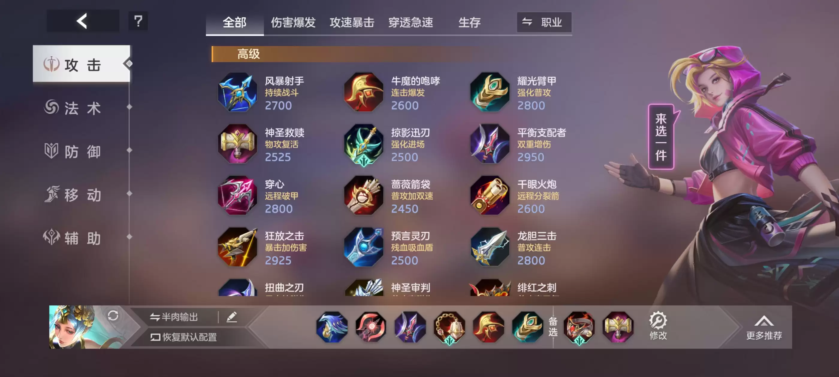 第一件选择牛魔的咆哮或者破天,牛魔的咆哮可以增加秒人能力,但是破天可以增加留人能力,可以根据敌方阵容选择优先级