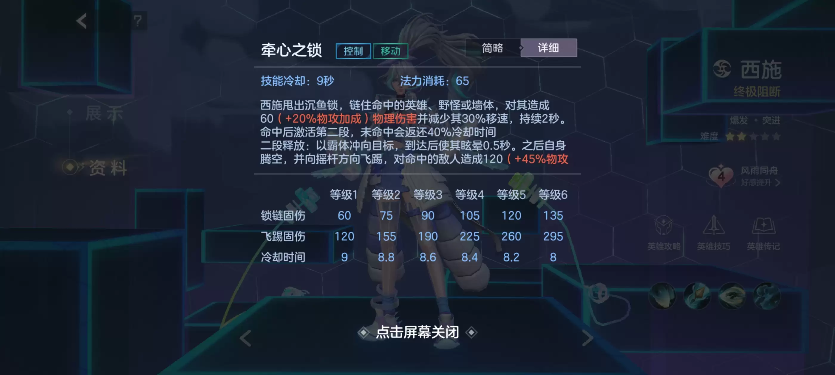 在完成冲刺后,西施将会获得一次超级普攻,用铁链抽击自身三个身位范围内所有敌人,可以在人堆命中更多的人。