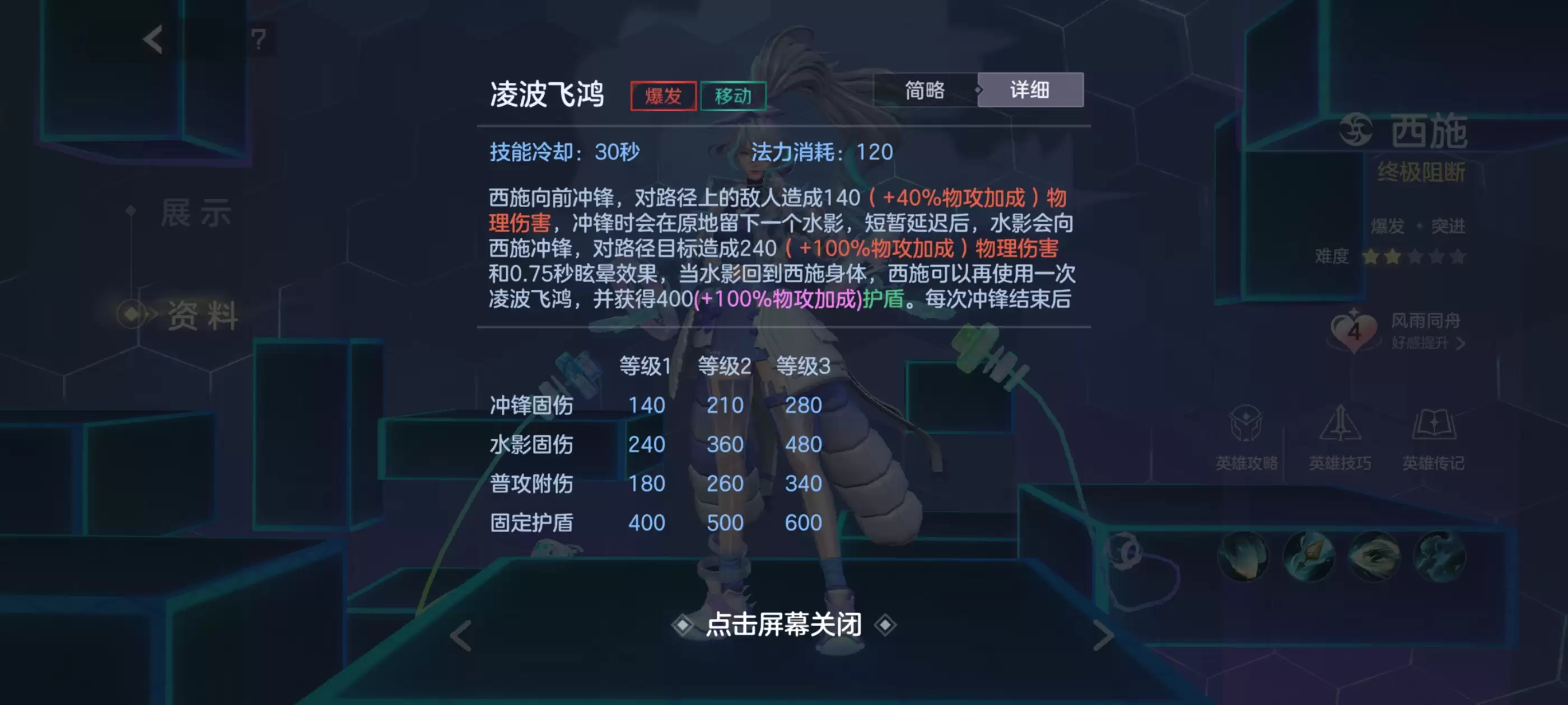 西施向前突刺并且在原地召唤幻影,幻想随后会冲向西施造成伤害并且眩晕途径的所有敌人,此时,西施才可以用二段效果,注意自身和影子的距离,及时调整位置,让幻影更容易命中