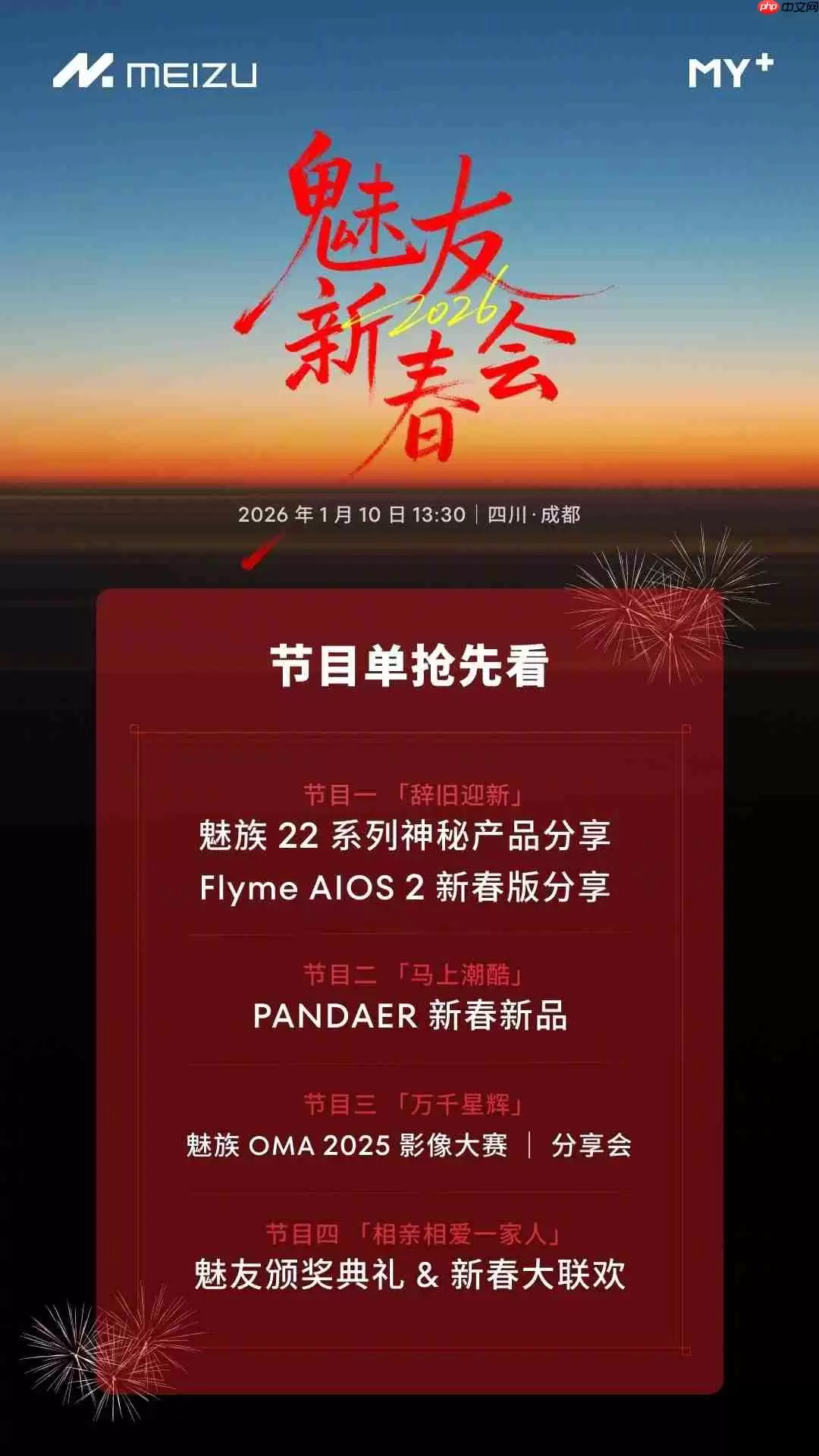 刚刚迈入新年的门槛,魅族科技已为全球魅友送上一份重磅邀约。1月9日,魅族官方正式宣布,将于2026年1月10日下午13:30,举办“2026魅友新春会”。这不仅仅是一场产品发布会,更被官方定义为一场融合前沿科技与用户情感的年度盛会。