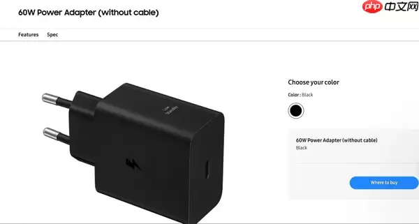一个颇具说服力的佐证是,三星官方网站及部分地区的三星商城已悄然上架了一款型号为EP-T6010的60W USB-C电源适配器。这款适配器明确标注兼容Super Fast Charging 2.0与PPS协议。值得注意的是,目前所有在售的三星机型均不支持此功率的充电。