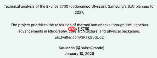 近日,据海外知名科技媒体披露,三星下一代旗舰移动平台Exynos 2700(内部代号“Ulysses”)的多项关键规格信息已提前曝光。这款计划于2027年推出的芯片,相关细节涵盖了制程工艺、CPU架构、散热方案及内存支持等多个维度,预示着一场全面的技术跃迁即将到来。
