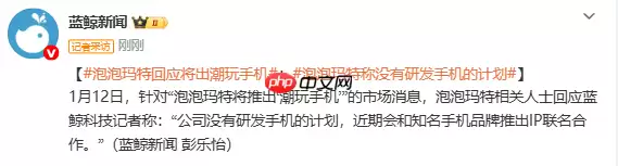 针对近期市场流传的“泡泡玛特将推出‘潮玩手机’”传闻,泡泡玛特相关人士在1月12日明确回应称:“公司没有研发手机的计划,近期会和知名手机品牌推出IP联名合作。”这一消息由蓝鲸新闻报道,澄清了此前的市场传言。