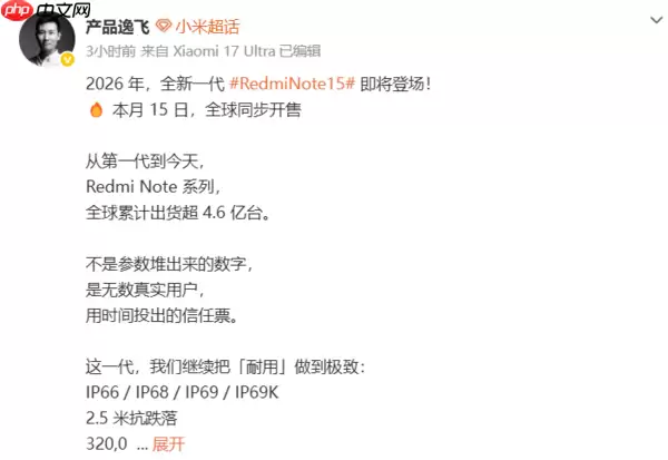 1月12日,小米管理层在社交媒体上公布了备受期待的新品发布日程。据小米法国副总经理“产品逸飞”透露,全新Redmi Note 15系列将于1月15日在全球同步上市。这无疑为年初的智能手机市场投下了一枚重磅炸弹。