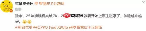 1月12日,一个未经官方证实的消息在数码圈引发了不小波澜。据知名数码博主透露,OPPO即将发布的年度旗舰新机OPPO Find X9 Ultra,或将首次搭载原生磁吸无线充电功能。如果消息属实,这将是继苹果MagSafe之后,安卓阵营在真正意义上的磁吸无线充电技术上迈出的重要一步。