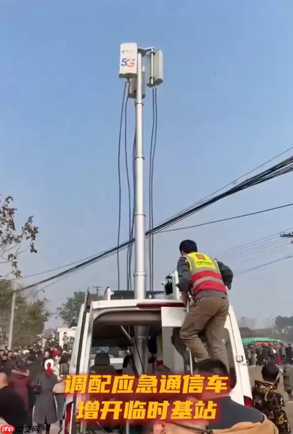 面对这场“流量风暴”,中国电信合川分公司第一时间启动了应急响应机制。他们连夜调度应急通信车赶赴现场,并火速部署、紧急启用临时的5G基站,以快速增强网络覆盖与信号容量。
