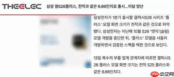 据多家供应链内部人士向媒体透露,Galaxy S26+的显示屏尺寸将延续上一代的设定,维持在6.66英寸。知情人士A表示,三星曾评估将原定为S26 Edge项目定制的OLED面板转用于S26+,但最终仍选择沿用与S25+规格相近的OLED模组。相比之下,标准版Galaxy S26的屏幕尺寸略有提升,从6.16英寸小幅扩大至6.27英寸。