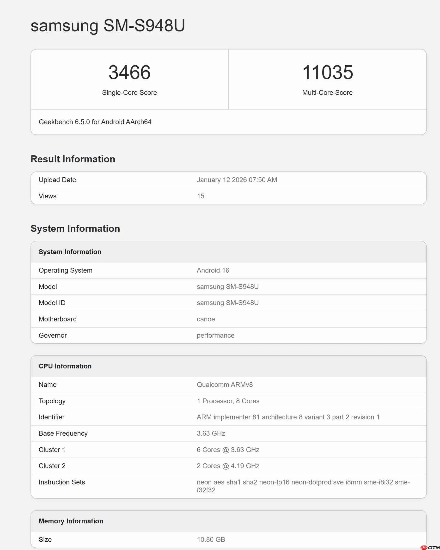 1月13日,科技圈传出最新动态,一款型号为SM-S948U的三星新机悄然现身知名性能测试平台GeekBench。结合GSMA IMEI数据库中的备案信息,这款设备在正式上市后,预计将被命名为三星Galaxy S26 Ultra。