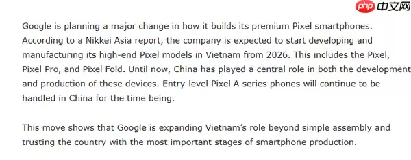 根据最新的战略部署,越南将首次全面承接高端Pixel机型“从概念到量产”的完整开发链条。这一转变不仅提升了越南在全球科技制造业中的地位,也反映了全球供应链多元化布局的持续深化。