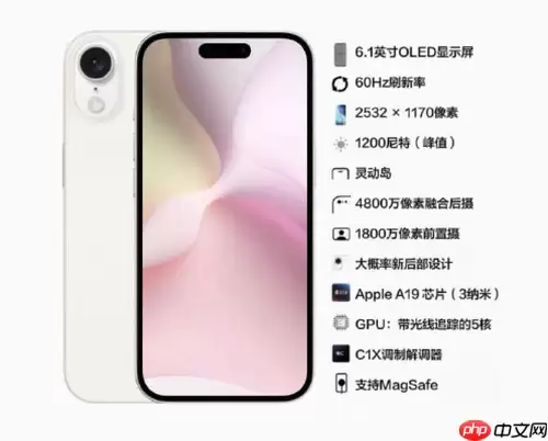 在核心性能上,iPhone 17e将迎来一次显著跃升。它将首发基于3纳米工艺打造的A19处理器,集成6核CPU与5核GPU架构。相比前代iPhone 16e所使用的芯片,其CPU性能预计将大幅提升,足以稳定运行大型语言模型等高负载应用。配合深度优化的iOS 26系统,整机的流畅度与续航表现也将获得明显改善。