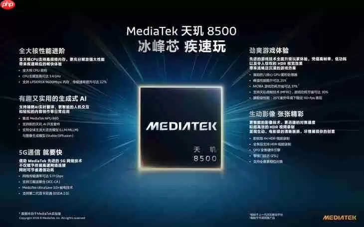 2026年1月15日,联发科(MediaTek)正式推出天玑9500s与天玑8500两款全新移动平台。两款芯片承袭天玑系列旗舰级技术底蕴,在性能释放、能效控制、人工智能、影像处理及游戏表现等关键领域完成系统性跃升,分别精准切入普及型旗舰与年轻化轻旗舰细分赛道,为智能手机产业带来新一轮技术驱动力与市场活力。