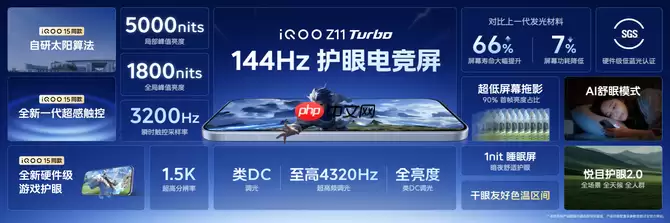 iQOO Z11 Turbo配备6.59英寸1.5K分辨率、144Hz高刷护眼电竞屏,集成类DC调光、最高4320Hz超高频PWM调光、全亮度类DC调光三重护眼方案,并通过SGS硬件级低蓝光与低频闪双重认证,实现全天候、全人群、全场景下的视觉友好体验。