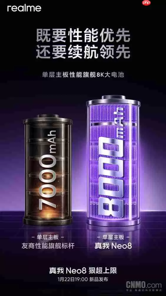 在1月19日,知名科技品牌真我realme正式官宣,即将推出的Neo8机型将迎来续航能力的跨越式升级。该机率先采用创新的单层主板结构,得以容纳一块在同等性能机型中极为罕见的8000mAh超大容量电池。这一容量相比市面上的主流竞品有了显著提升,标志着智能手机续航体验进入了新的阶段。真我Neo8旨在让用户彻底告别电量焦虑,实现从清晨到深夜的持久陪伴,轻松应对全天候高强度使用的需求,是一次实至名归的续航革命。