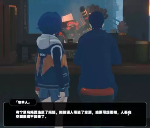 完成这段关键对话后,接下来的操作是推进时间。你可以选择返回事务所休息直到第二天凌晨。再次外出,前往六分街的“赤竹面馆”附近。此时,你会看到一位名叫“牧羊人”的NPC出现,他会上前与你搭话,表示有人委托他来找你。