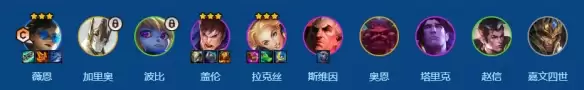 这套阵容的关键英雄包括:薇恩、加里奥、波比、盖伦、拉克丝、乌鸦、奥恩、宝石、赵信、皇子。他们将协同作战,激活核心羁绊。