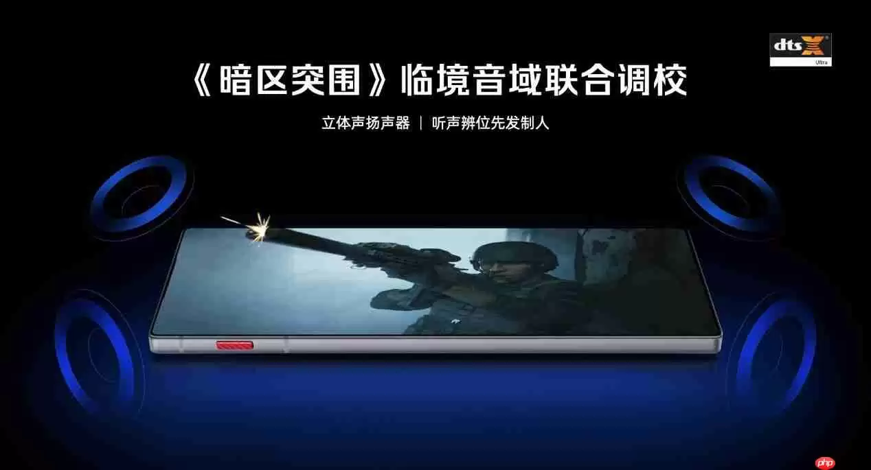 联合《暗区突围》临境音域团队深度调校后,红魔11 Air支持高精度空间音频定位,助力玩家“听声辨位”,抢占先机。