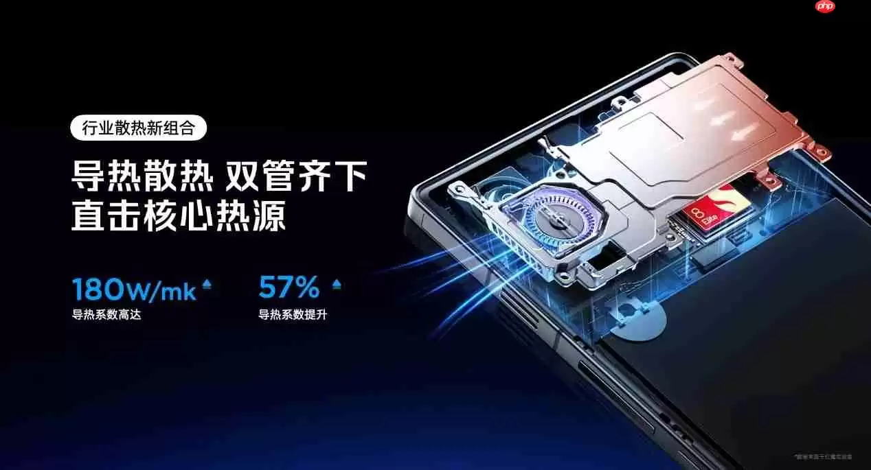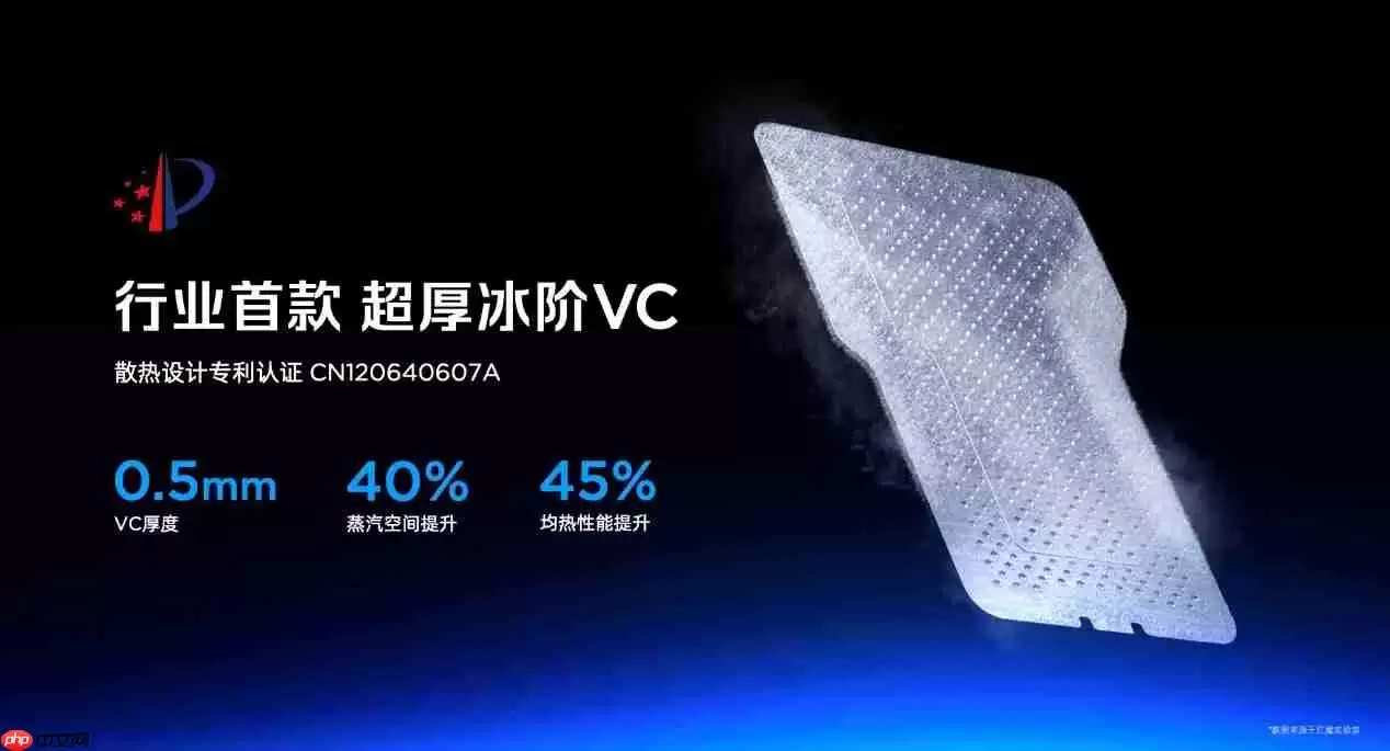 除主动风冷外,红魔还首发行业首款超厚冰阶VC均热板——通过结构加厚与双面凸起工艺,蒸汽腔体积提升40%,均热能力增强45%,并实现VC直触屏幕,整机散热效率提升47%。