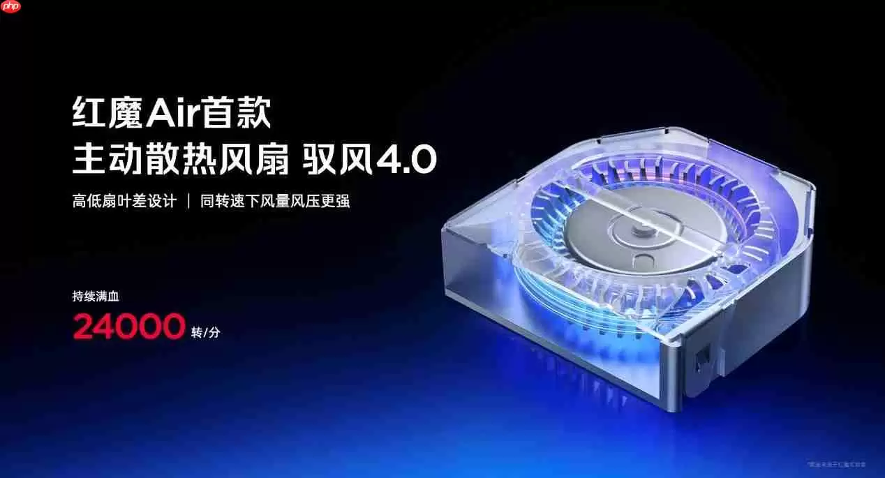 本次红魔11 Air首次在Air系列产品中搭载全新驭风4.0主动散热风扇,最高可持续输出24000转/分钟的强劲风速。