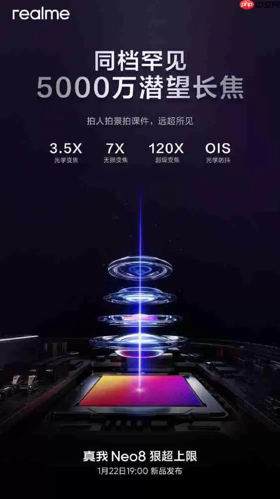 1月21日,手机品牌真我正式发布了其全新机型真我Neo8。新机在影像配置上带来了巨大提升,其后置配备了一颗5000万像素的专业长焦镜头,支持3.5倍光学变焦、7倍无损数码变焦,并最高可实现120倍的超级变焦能力,同时还搭载了OIS光学防抖技术,为远摄清晰稳定提供了硬件保障。