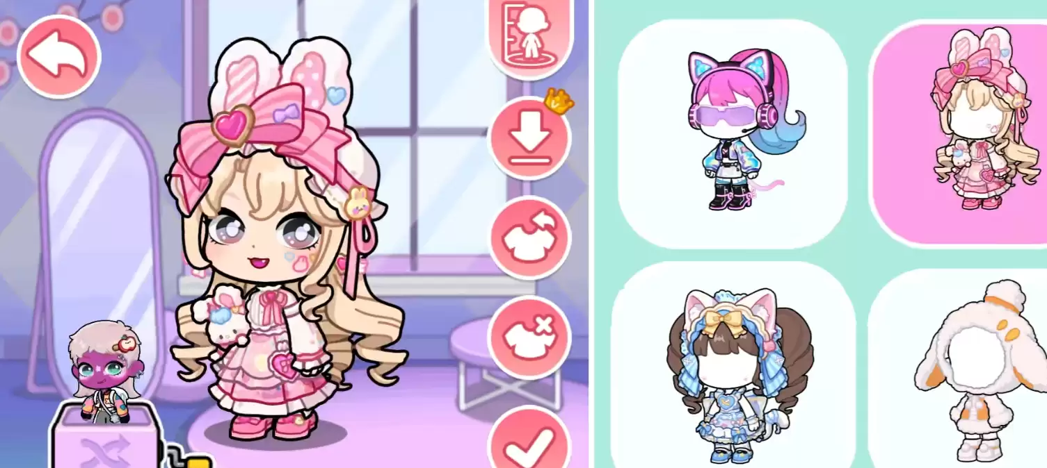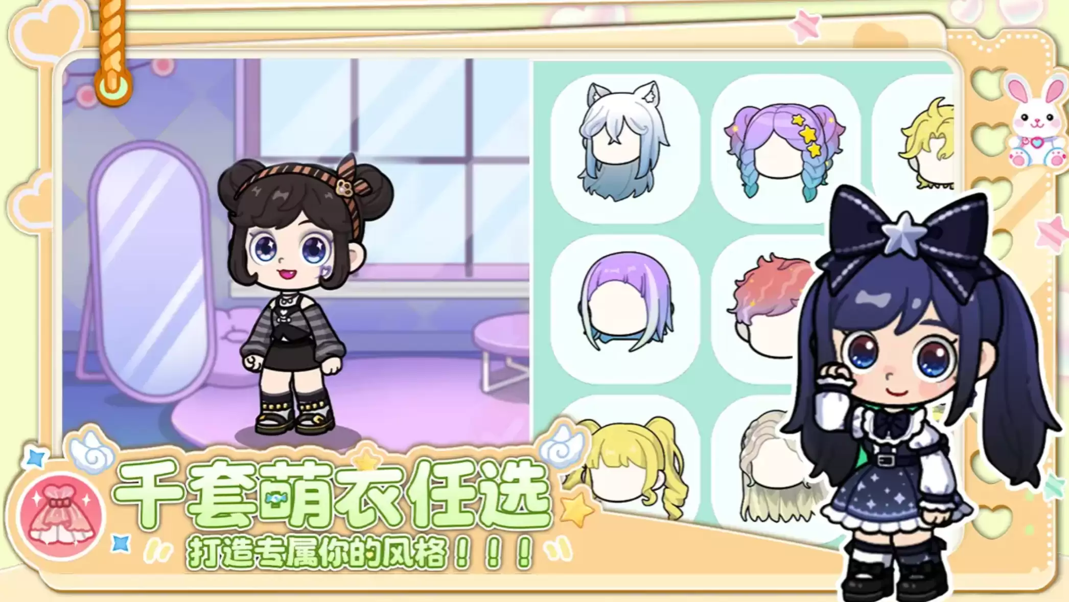 在发型选择上,你可以直接从预设的丰富库中挑选。无论是甜美的双马尾、利落的短发,还是温柔的长发,兔小萌世界都提供了多样化的款式。