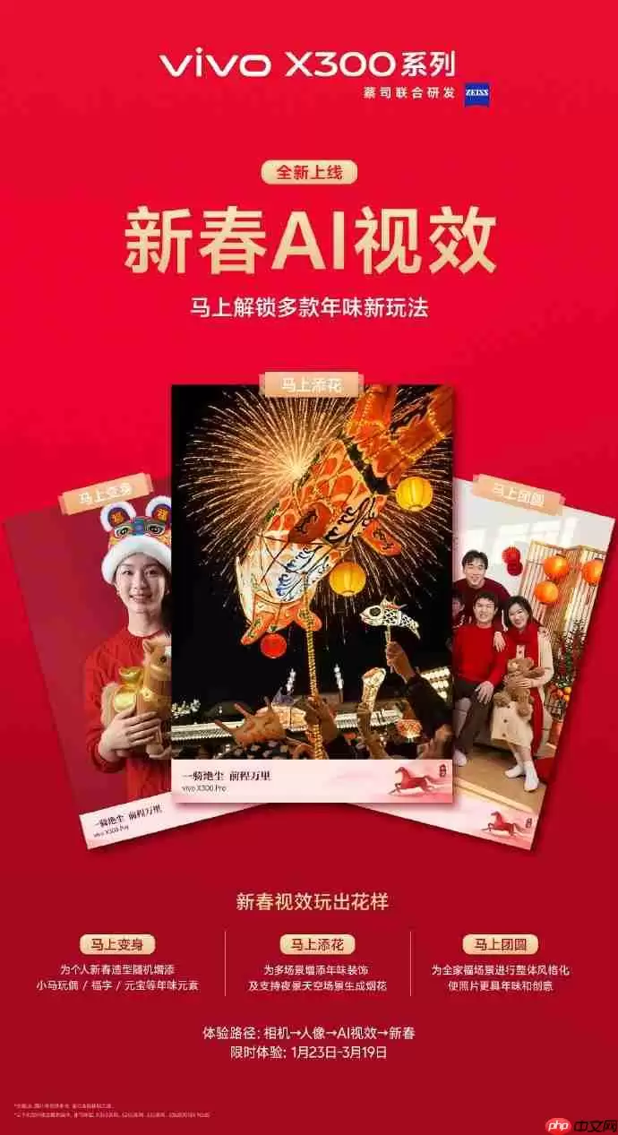 根据官方说明,包括vivo X300系列、X200系列、S50系列、S30系列以及X Fold5等在内的多款机型,在升级至最新系统版本后,均可完整支持本次推出的春节限定水印与新春AI视效功能。