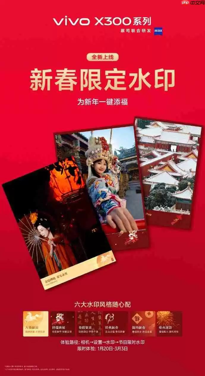 1月21日,vivo正式公布了全新的春节主题限定水印。这项功能的推出,旨在为农历新年期间进行影像创作的用户,增添浓厚的节日仪式感与趣味互动体验。