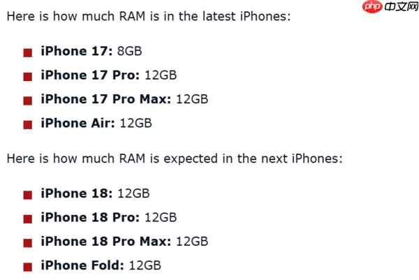 为了更清晰地理解这一变化的意义,不妨先看看当前在售的iPhone 17系列内存配置:iPhone 17(8GB)、iPhone 17 Pro(12GB)、iPhone 17 Pro Max(12GB)以及iPhone Air(12GB)。可以看出,目前标准版与高端型号间仍存在明确的内存区隔。