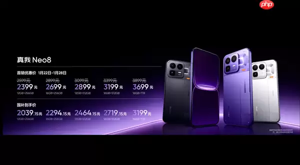 真我 Neo8提供了丰富的内存版本选择,以满足不同用户的需求。具体官方售价如下:12GB+256GB版本为2399元,16GB+256GB版本为2699元,12GB+512GB版本售价2899元,16GB+512GB版本为3199元。而顶配的16GB+1TB存储版本则定价为3699元。值得注意的是,在叠加官方提供的国家补贴后,用户最低入手价仅为2039.15元起,性价比优势非常突出。