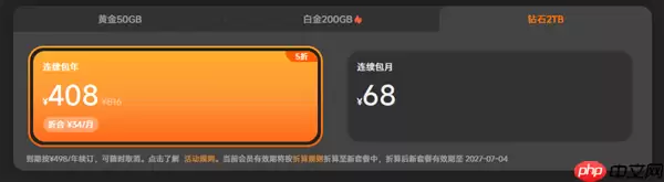 - 2TB大容量连续包年:为408元,平均每月34元。