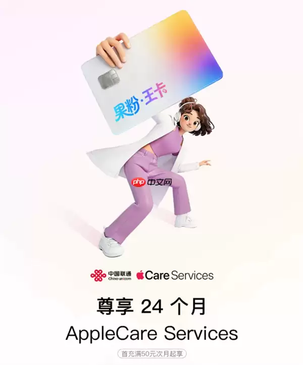 尤为值得关注的是,成功首充50元的用户,将获得一项极具吸引力的长期权益。从次月开始,用户可以连续24个月免费享有AppleCare Services。这项服务由苹果官方授权服务商提供,主要包括屏幕碎裂及电池保障服务。需要用户留意的是,这项服务虽然专业可靠,但与苹果官网销售的AppleCare+全面保障计划不完全等同。