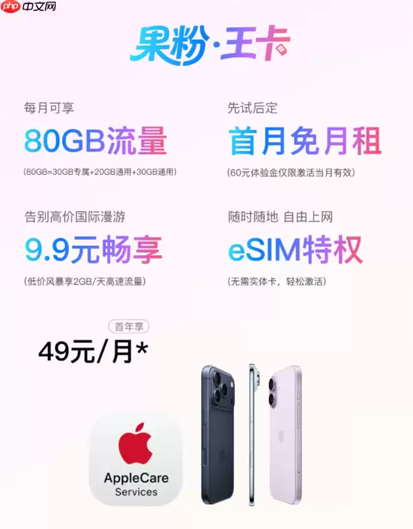 总体来看,中国联通“果粉·王卡”以每月49元的实付价格,提供了包含80GB流量、eSIM多设备协同、国际漫游日包以及长达两年的AppleCare保障服务,为苹果设备用户提供了一个融合通信与设备维保的一站式高性价比选择。